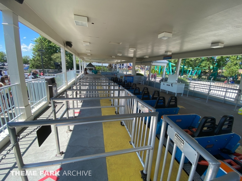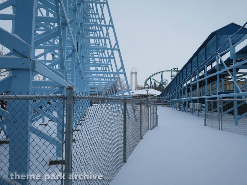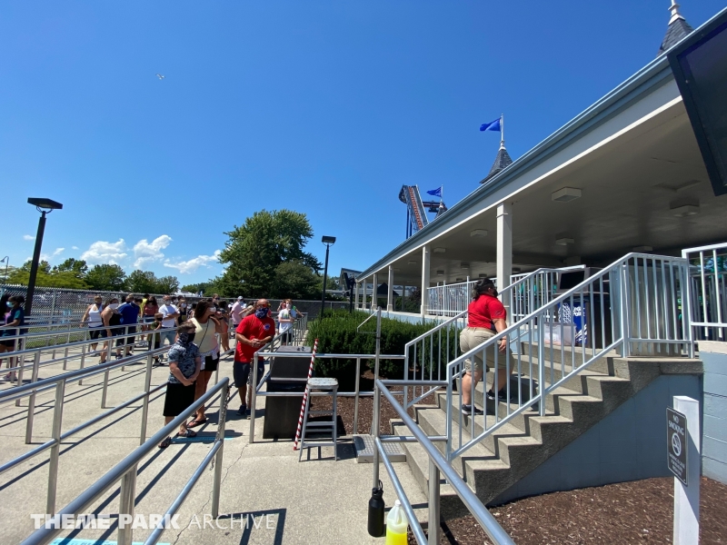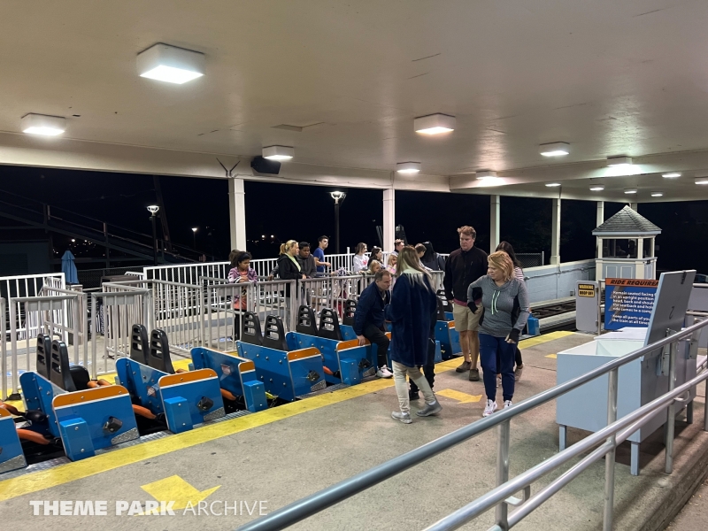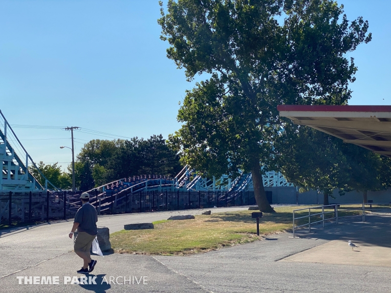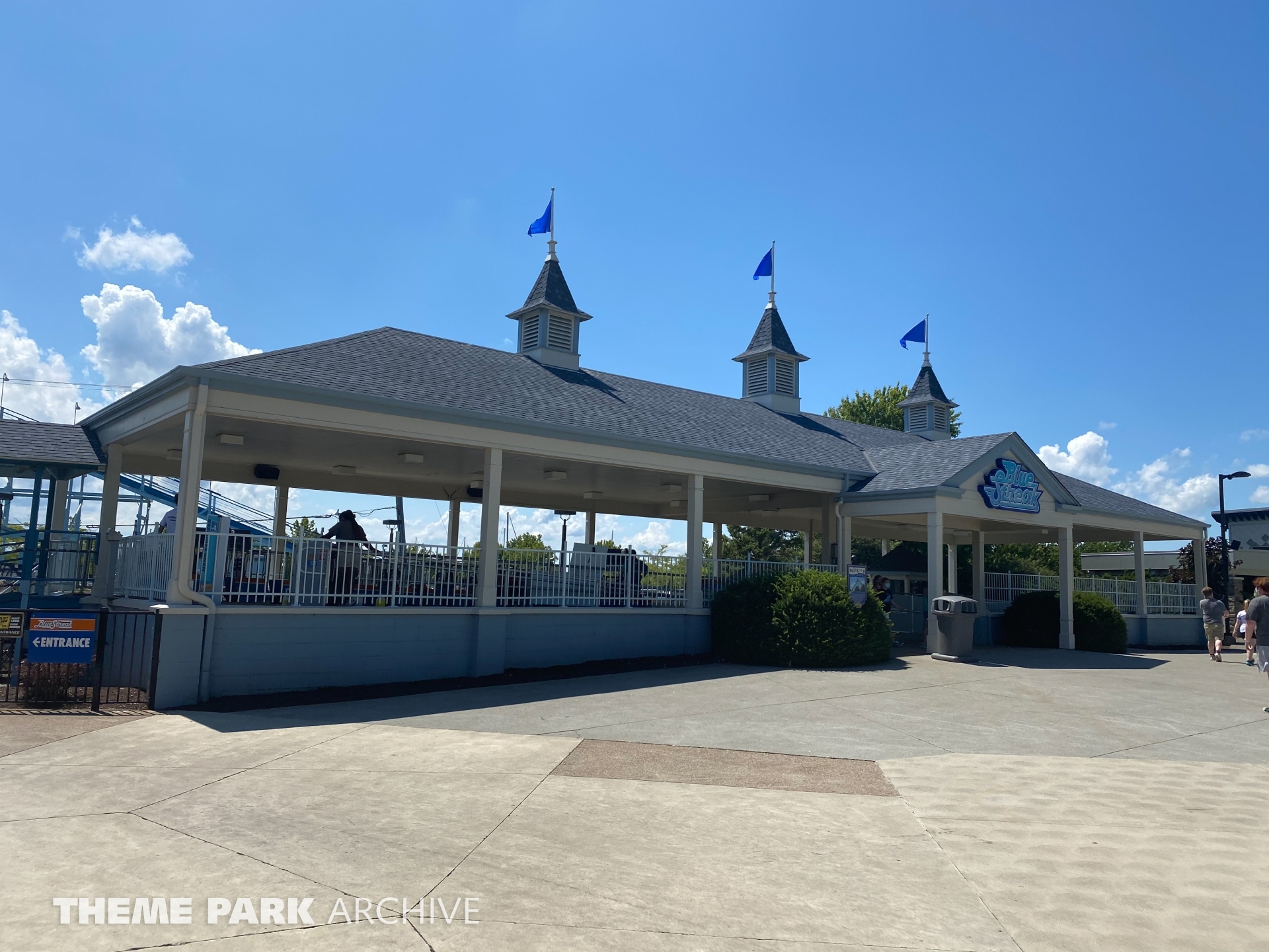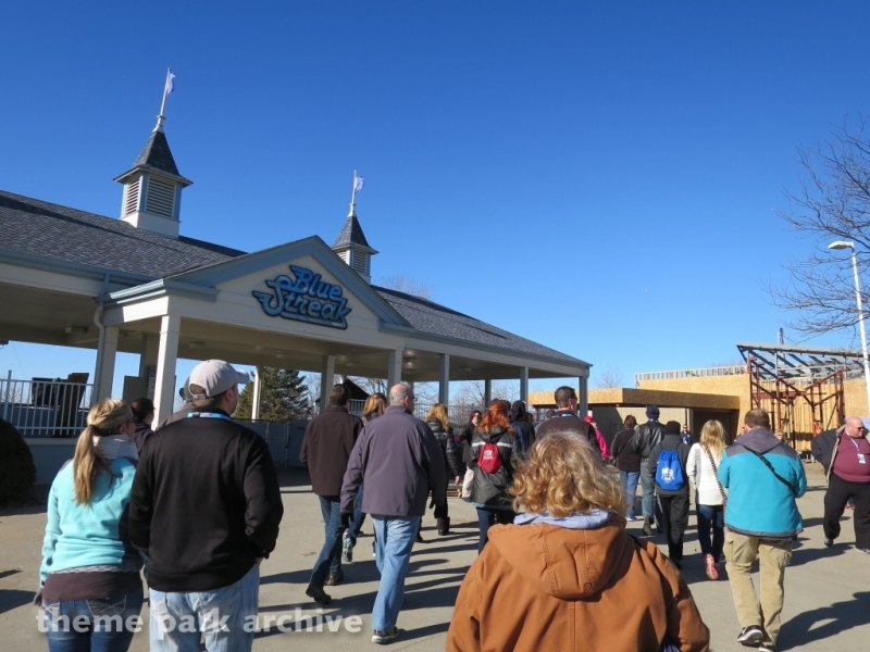 Blue Streak is a wooden roller coaster that was designed by Frank Hoover and John Allen and built in 1964. The ride contains two PTC trains. The ride has an out and back layout that takes you from the entrance of Valravn over to the park entrance.