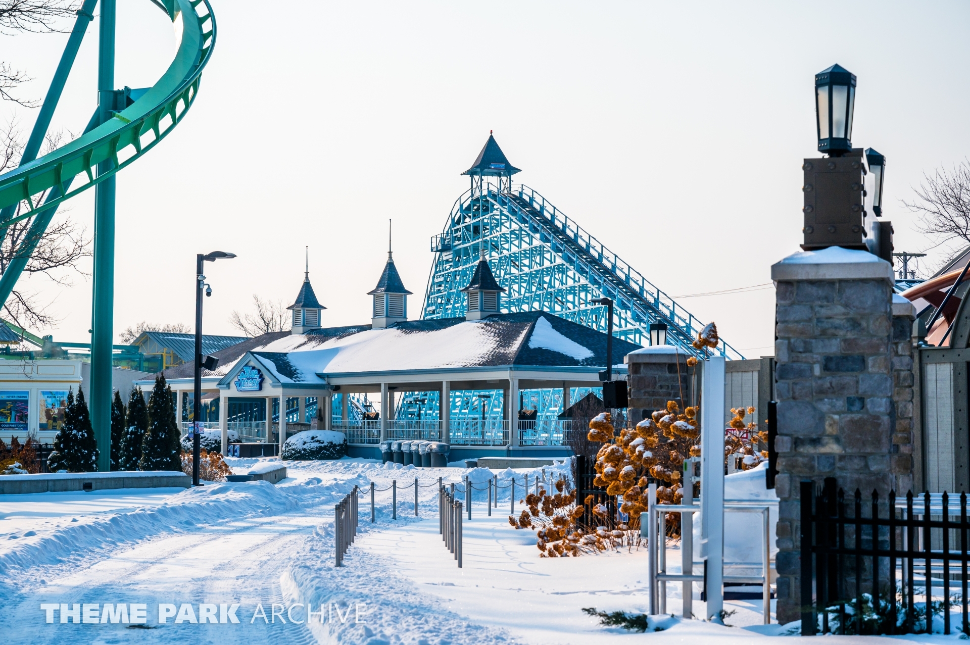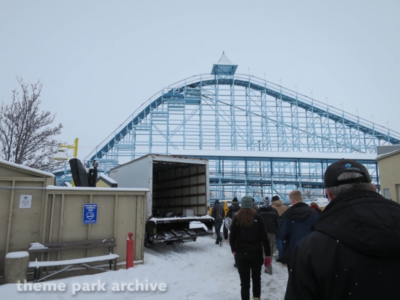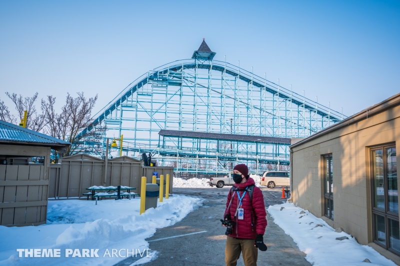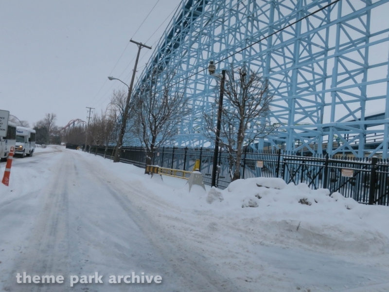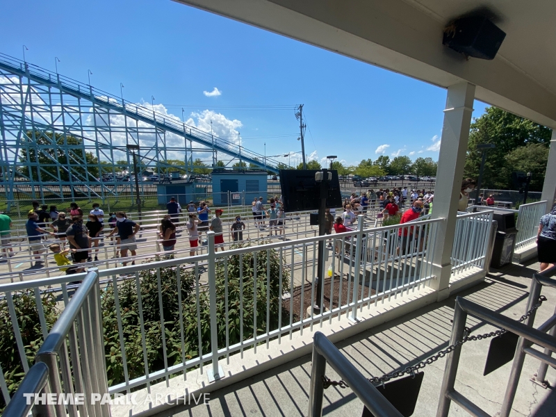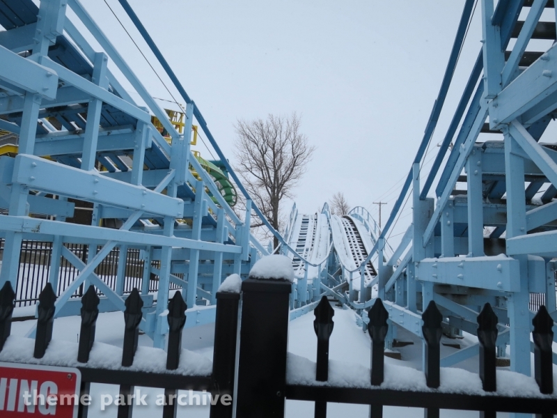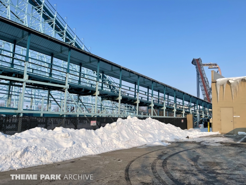 Blue Streak is a wooden roller coaster that was designed by Frank Hoover and John Allen and built in 1964. The ride contains two PTC trains. The ride has an out and back layout that takes you from the entrance of Valravn over to the park entrance.