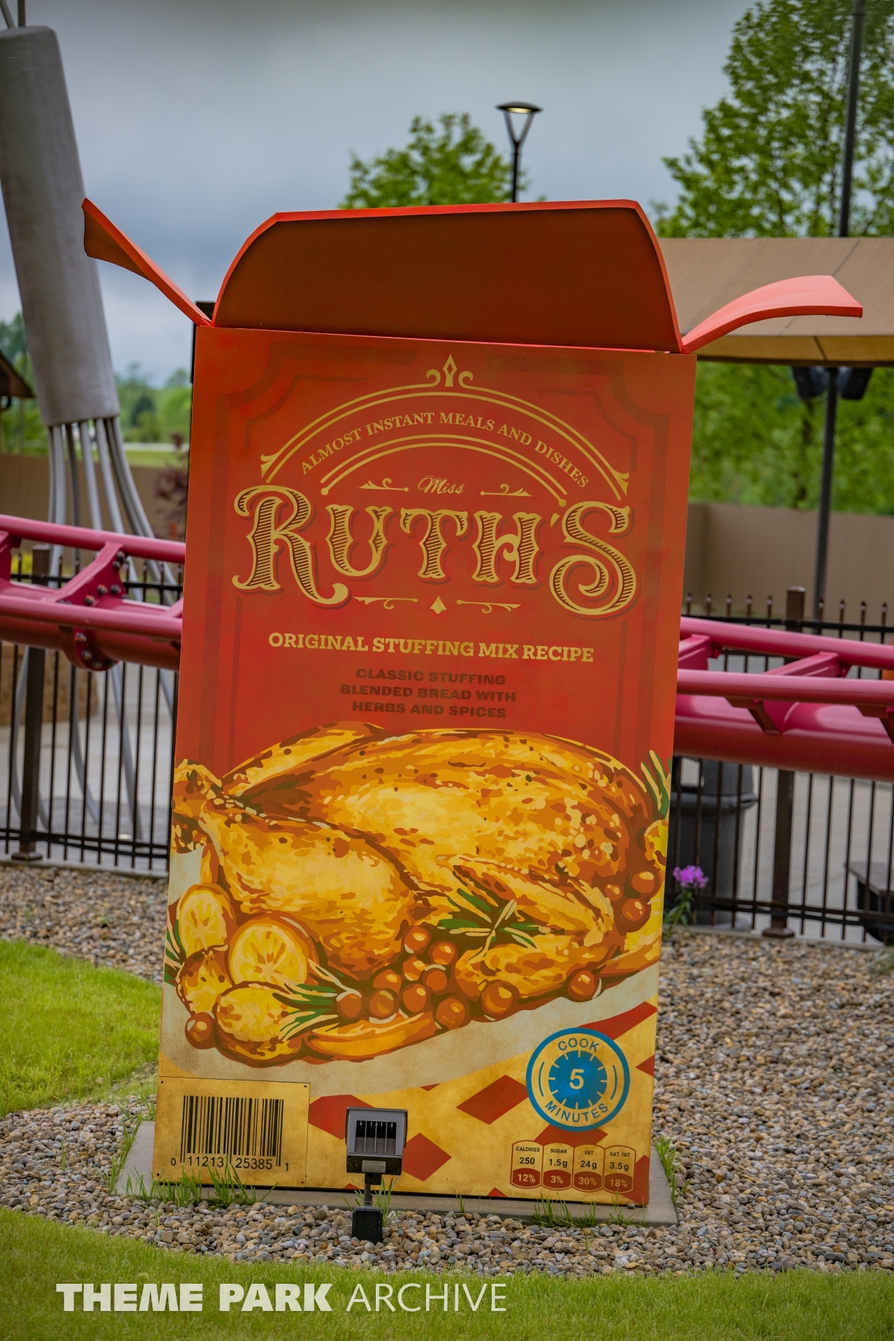 What sets this attraction apart is how committed it it to one of the most preposterous themes we have ever seen. Starting with the premise that the ride vehicles are gravy boats, the queue has been setup as if you are visiting your grandparents. Outside alongside the ride's layout, 3dxScenic has done a great job bringing to life larger than life Thanksgiving inspired sculptures including a giant whisk, rolling pin, kitchen timer, milk bottle, stuffing box and a larger than life cranberry sauce can that you get to ride through. Needless to say, easter eggs galore.