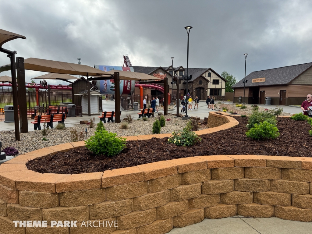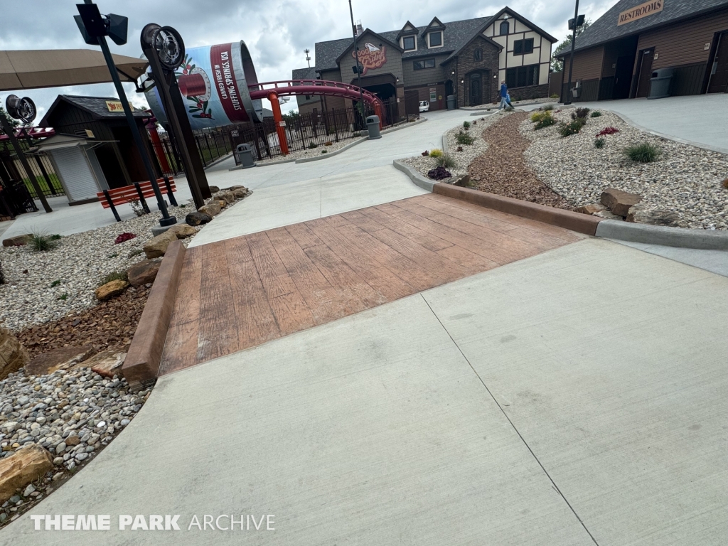 We were invited by Holiday World to check out their brand new for 2024 attraction: Good Gravy!. This attraction is a custom layout Vekoma Junior Boomerang roller coaster. It is the first of its type in North America. This family coaster is the centerpiece of the brand new Stuffing Springs section of the park.