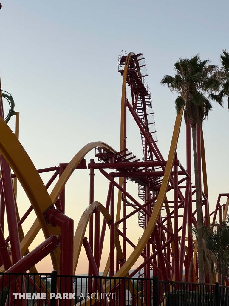 In this photo update, we visit Six Flags Magic Mountain just a few days before Wonder Woman Flight of Courage previewed and opened to the public. We did get to see the ride test and plan to make it back up to the park soon to check it our for ourselves. During this visit, we arrived in the late afternoon and had just enough time to ride all our favorites. The stand-out attraction was a newly repainted and reopened Tatsu.