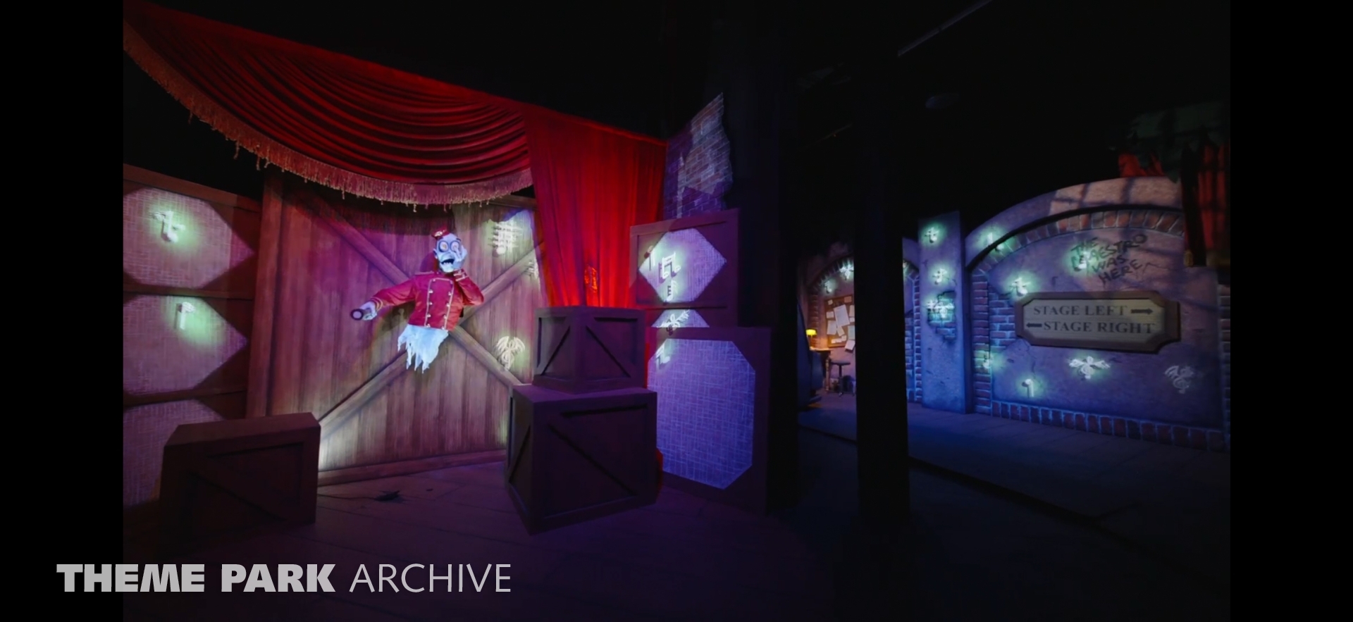 In this photo update, we share photos from the media day for Phantom Theater: Opening Nightmare at Kings Island. This is a full scale refresh of the former Boo Blasters attraction featuring all new theming and gameplay elements. The ride was designed by Sally Dark Rides and features 33 animatronics across 26 show scenes. The ride is 6 and a half minutes long. Riders compete against each other to shine their flash lights on the ghost notes.