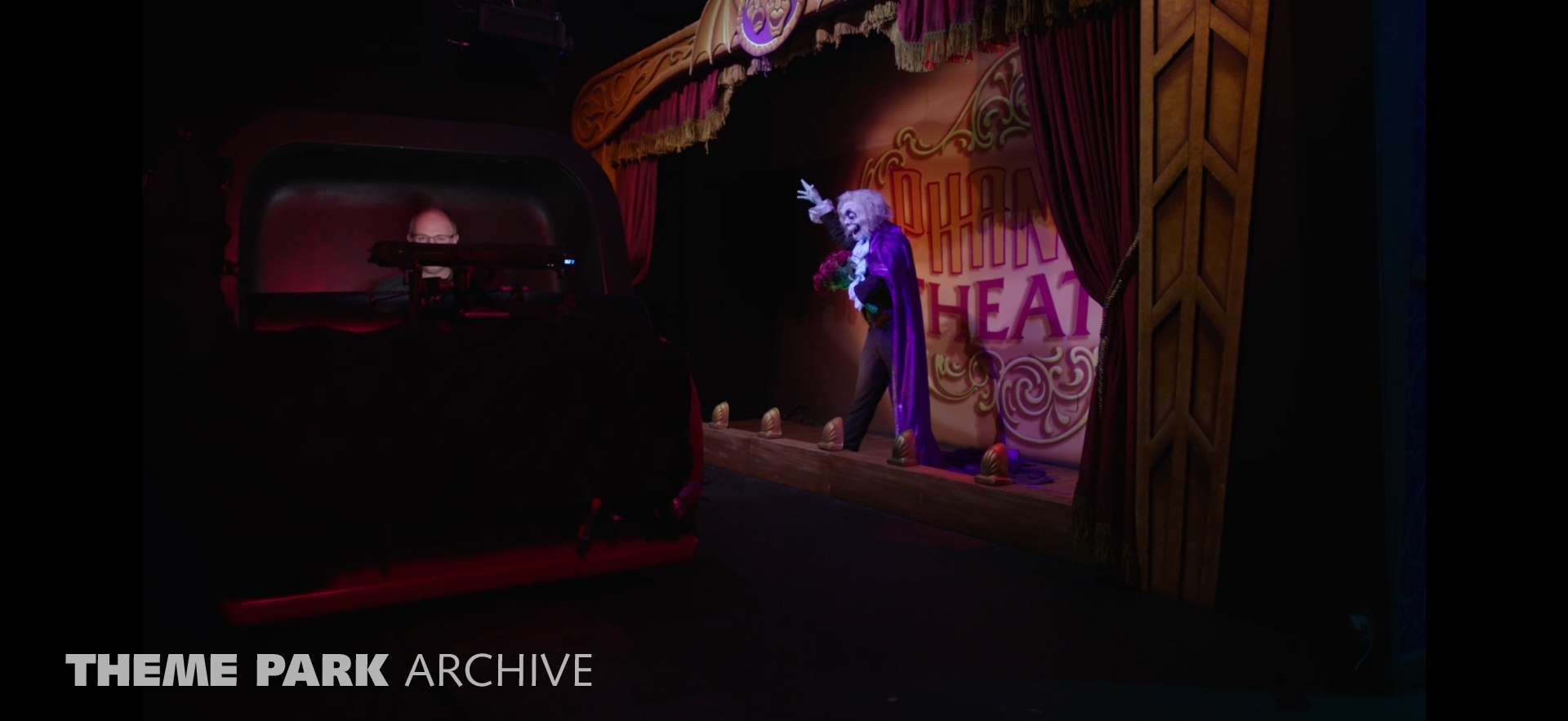 In this photo update, we share photos from the media day for Phantom Theater: Opening Nightmare at Kings Island. This is a full scale refresh of the former Boo Blasters attraction featuring all new theming and gameplay elements. The ride was designed by Sally Dark Rides and features 33 animatronics across 26 show scenes. The ride is 6 and a half minutes long. Riders compete against each other to shine their flash lights on the ghost notes.